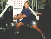 1.Assume a lunge position facing the cable machine; grab