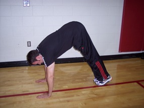 21st Century Six-Pack Ab Training! By Alwyn Cosgrove www.WarpSpeedFatLoss.com Throughout my years as a trainer I have seen the methods of getting clients sleek, ripped abs change. The once popular low fat – high carbohydrate diet has been replaced with a more effective lower carb – moderate fat diet. The once popular bodybuilding inspired body part split routines have been replaced with full body, metabolism based training programs. The once popular fat burning zone, ‘grind it out’ steady state cardio marathons have been replaced with high intensity interval burst training that spits in the face of the fat burning zone and instead focusing on creating a metabolic afterburn effect resulting in an increase in calories burned over the entire day and not just during exercise. What about ab training? Why hasn’t ab training changed? Well, it has. The days of endless crunches a la Rocky Balboa are gone. The days of 6 Minute Ab abdominal isolation circuits are gone. Why? Because the future of abdominal training is not about flexion (e.g. crunches). The future of ab training is stabilization training. For years we have been missing the boat with abdominal training. We have been focusing on training and developing a 6 pack through moving the abs by flexing our spines. The problem is that kind of training is NOT stressing your abdominals efficiently and NOT having them do what they are supposed to do. The future of 6 pack abs training is developing a six pack by making the abs do what they are meant to do – stabilize. The failure of 6 pack ab training may be partly due to our obsession on ‘seeing the muscle work’. We’ve all done crunches where we lay down and put out hands on our abs so we can feel the crunch. Textbooks are also to blame for their continued recitation of “the function of the abdominal muscles is to flex the spine”. But if we look as our daily lives, our abs work the most when we are walking, running, lifting, and even standing by stabilizing our core. Think about it…if the true function of our abs was flexion then wouldn’t they look like two biceps and not a 6 pack? Once you starting start using the 21st Century 6 Pack Training you will strengthen and develop your six pack faster and more efficiently than with the outdate ‘crunch’ method as you will be working your abs how they were designed to be worked and not how a magazine thought would make the best pictures. Here is an example of the 21st Century 6 Pack Ab Circuit 1) Inch Worms - 1 -2 x 5-10 reps Start: ![]() Finish: ![]() 2) Mountain Climbers on Swiss Ball - 1-2 x 45s (slow pace) Start ![]() Midpoint (Left Leg) ![]() Finish (Right Leg) ![]()